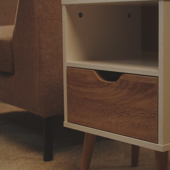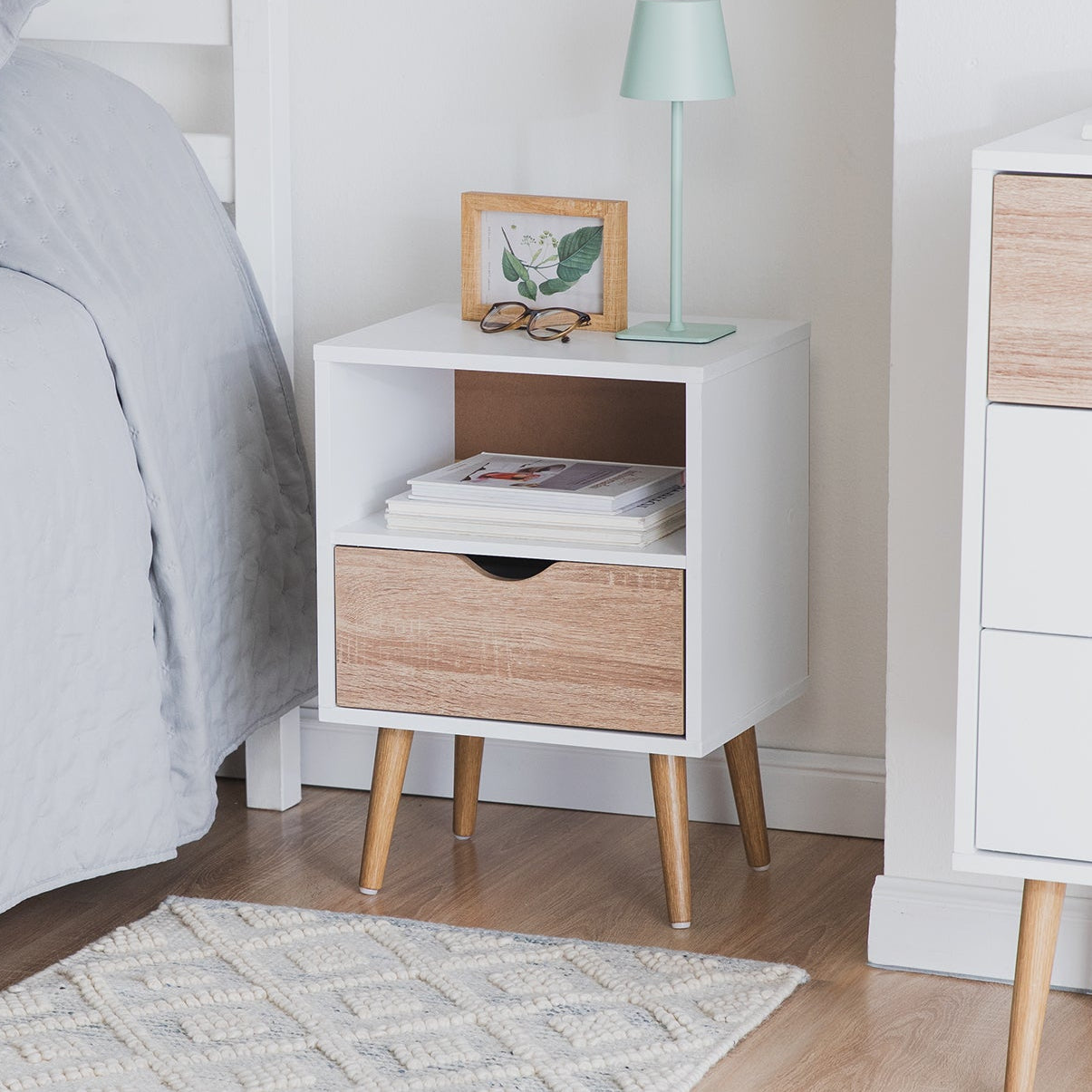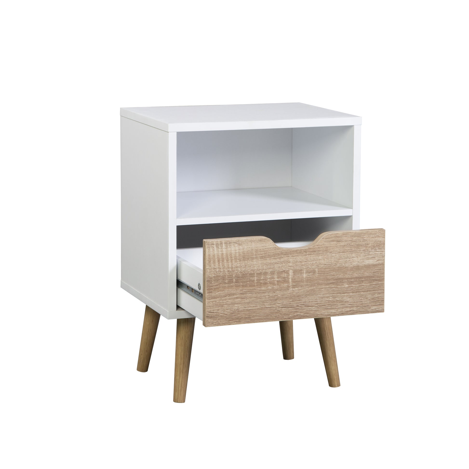 Disfruta de esta moderna mesa de noche estilo nórdico en tonos madera clara y blanco en tu hogar. Gracias a su diseño minimalista y versátil podrás utilizarlo como mesa de noche para tu recámara o como mesa auxiliar en tu sala. Suma diseño a tu hogar y dale un toque cálido a tus espacios con este práctico buró.