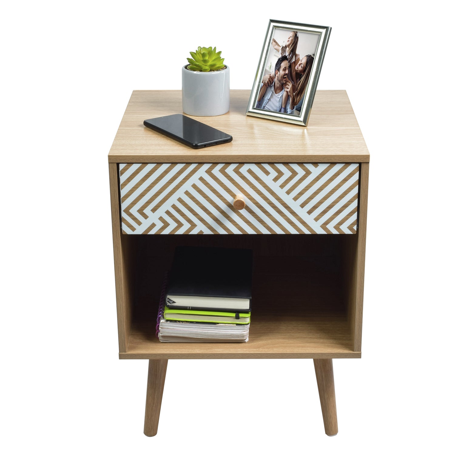 Disfruta de esta moderna mesa de noche en tonos café y blanco con cajón y entrepaño. Suma diseño a tu hogar y dale un toque diferente a tus espacios, gracias a su versatilidad podrás utilizarlo como mesa de noche o mesa auxiliar.