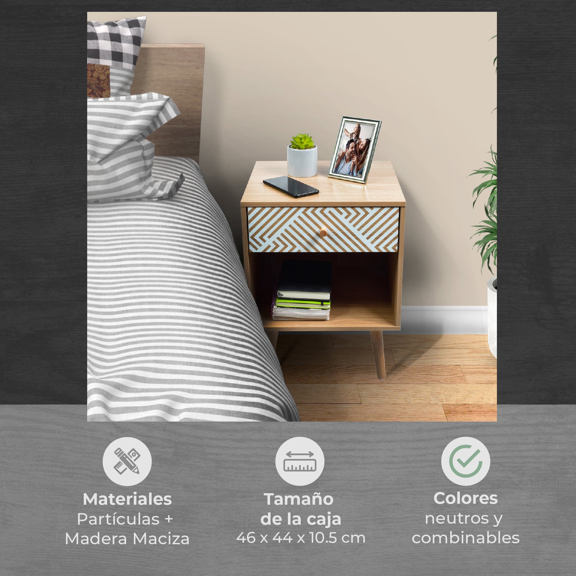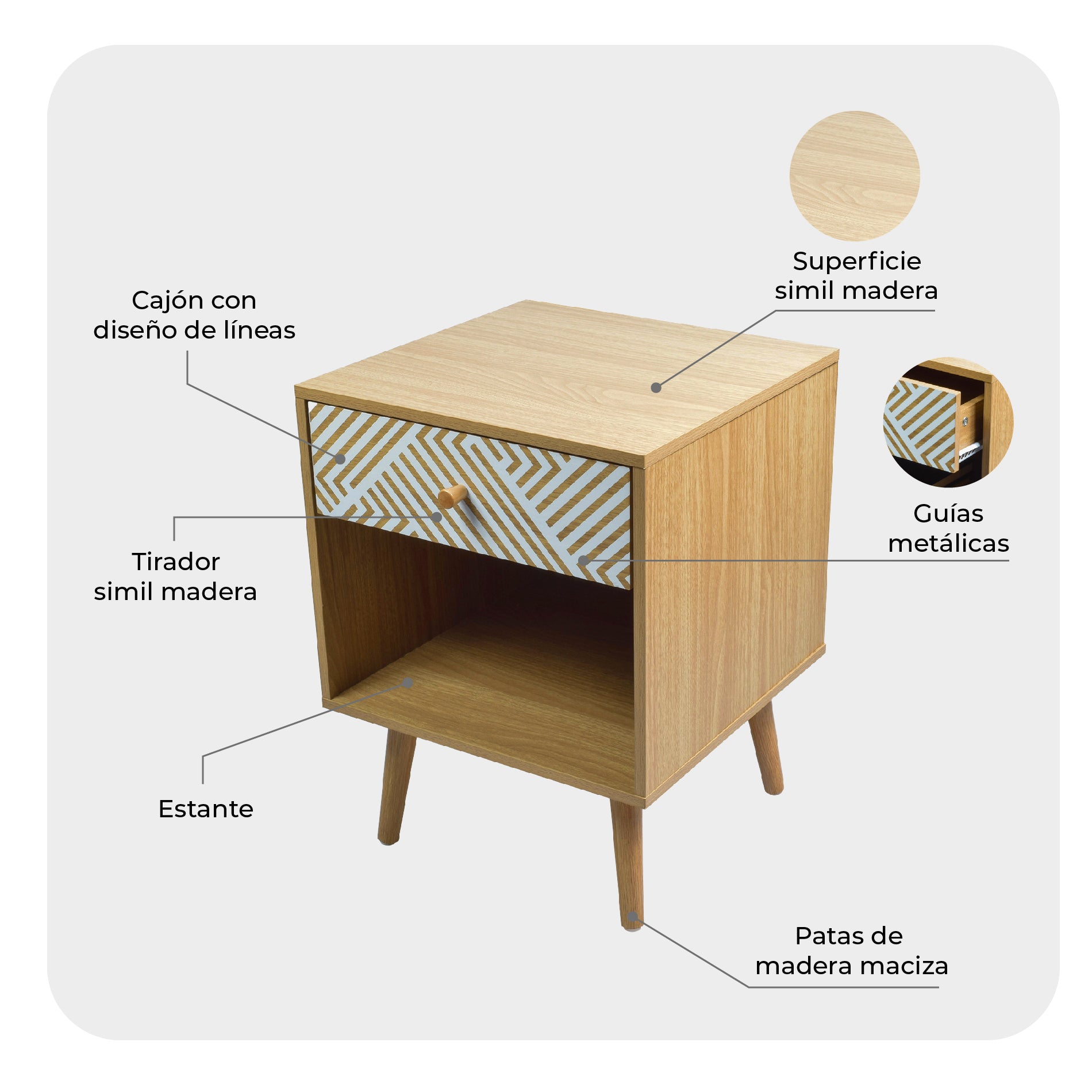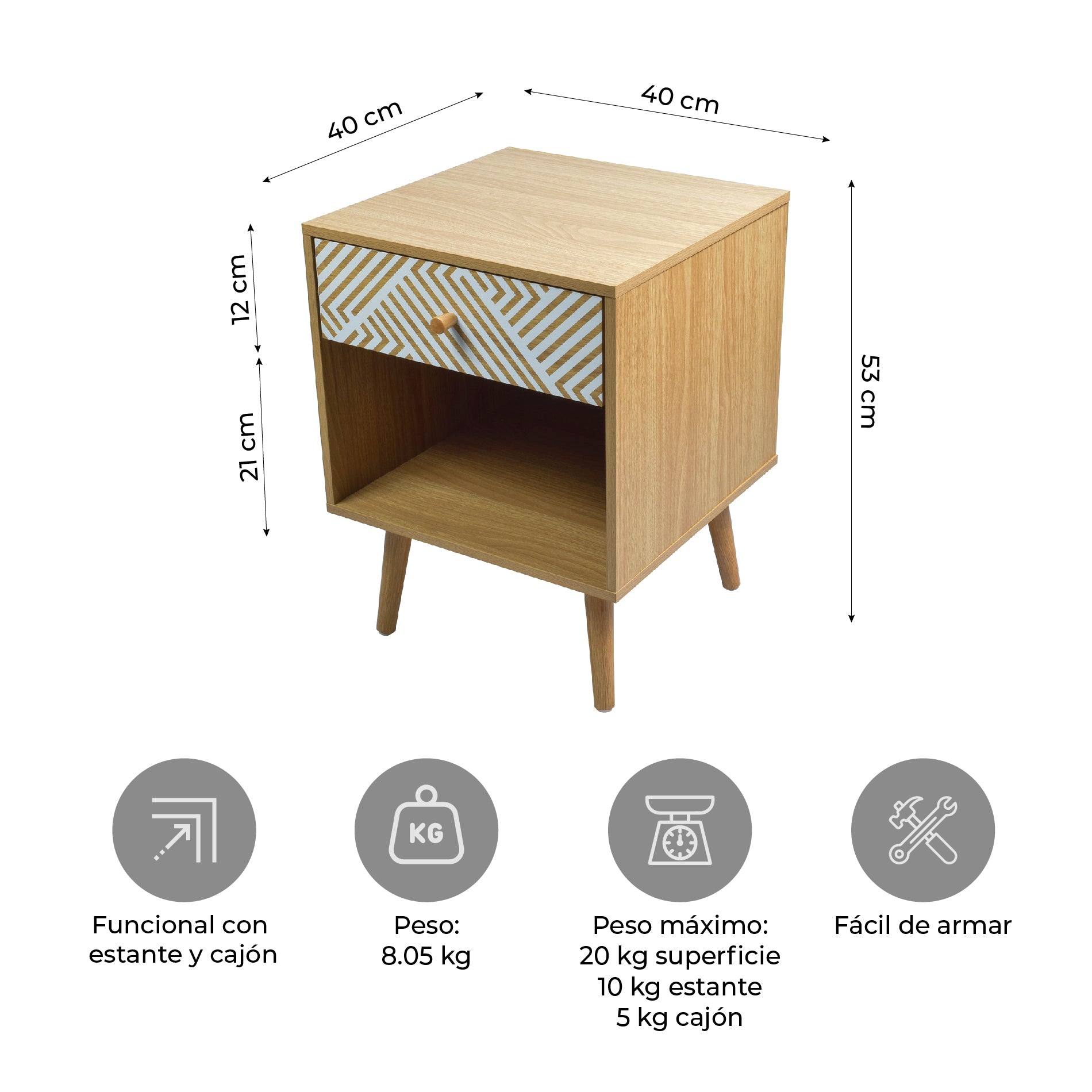 - Cuenta con un cajón con riel metálico y entrepaño para organizar tus objetos.