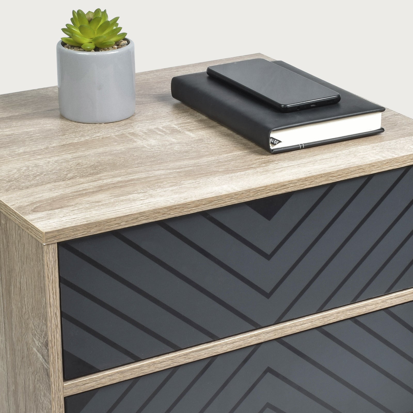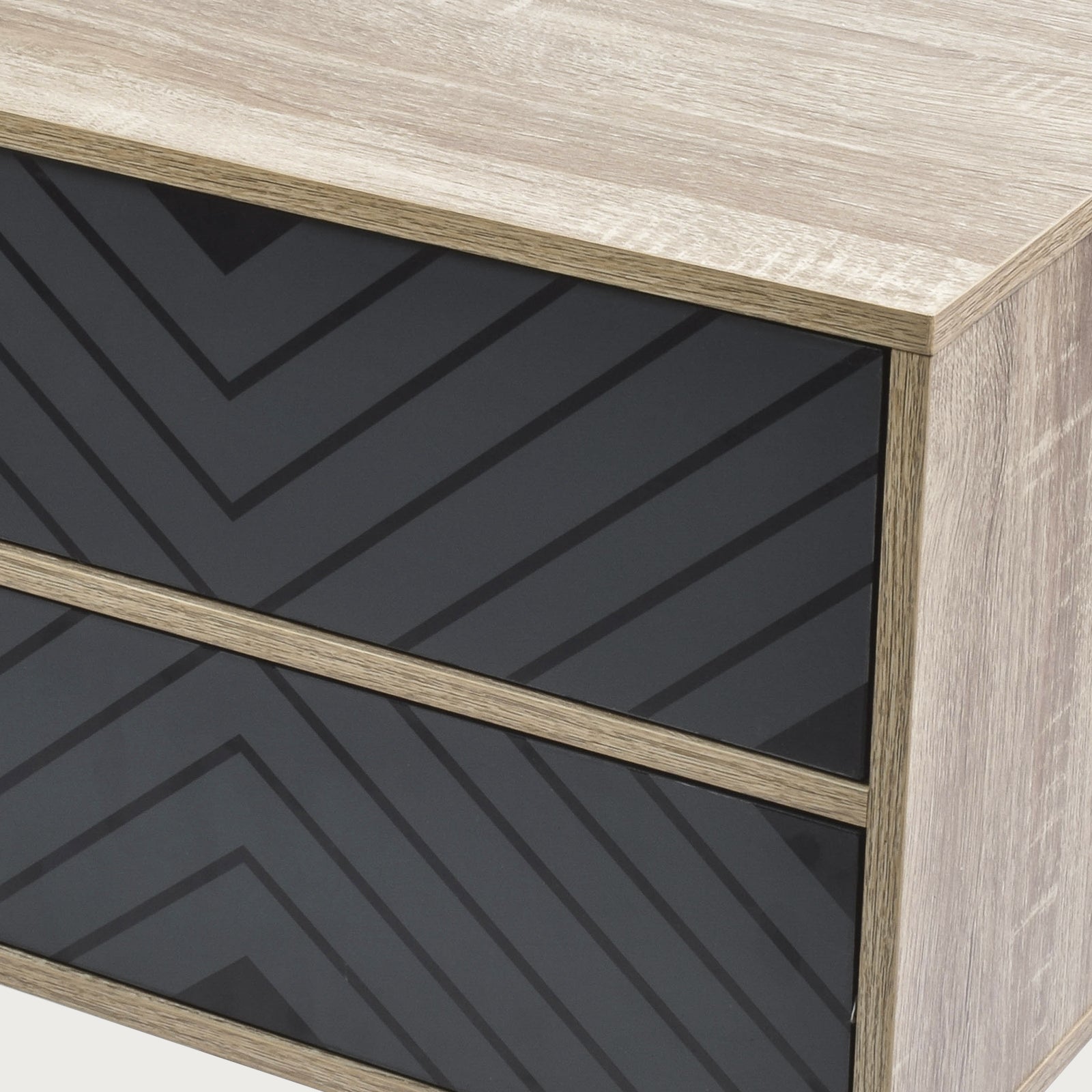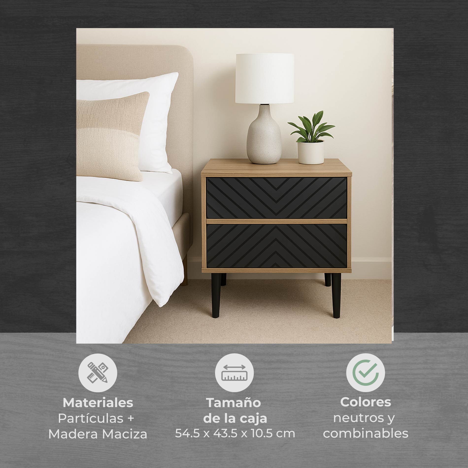 Disfruta de esta moderna mesa de noche en tonos café y negro. Este tipo de mesa de noche es perfecto para sumarle diseño a tu recámara, gracias a su estilo y tonalidad se adapta a cualquier tipo de decoración. Dale un toque diferente a tus espacios.