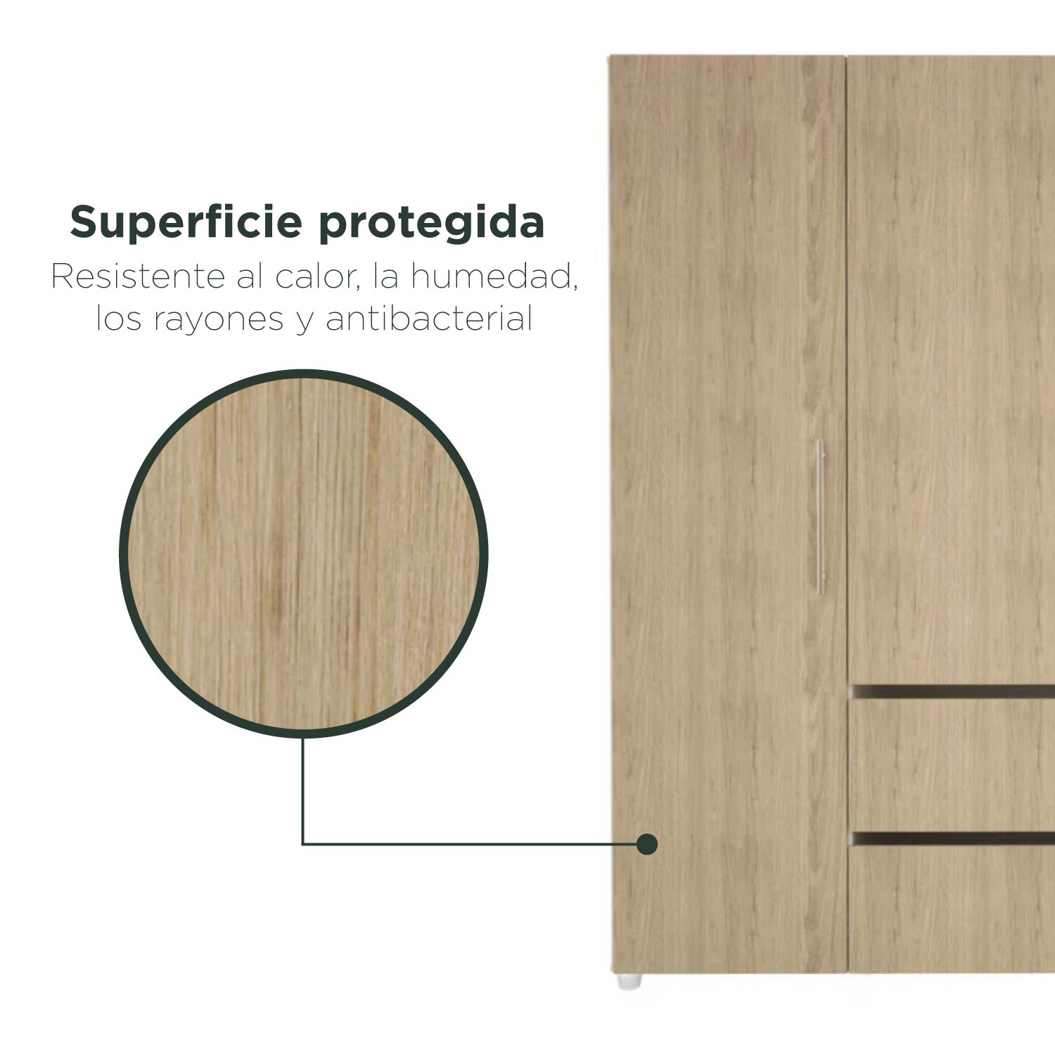 - Elaborado en aglomerado, melamina y herrajes metálicos