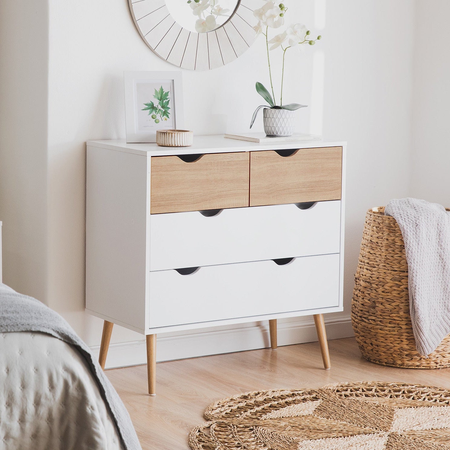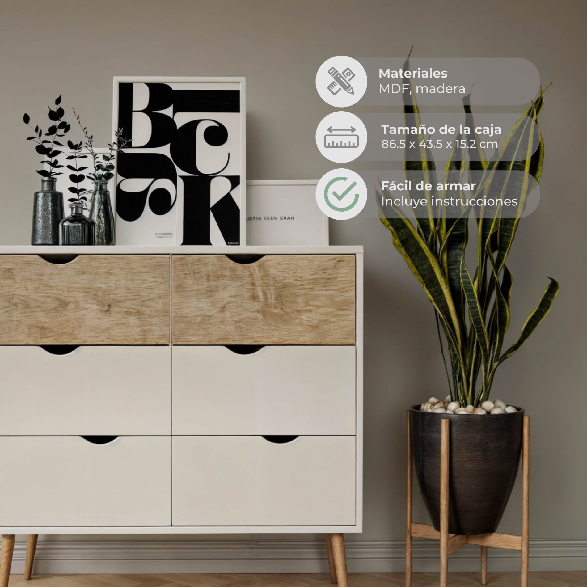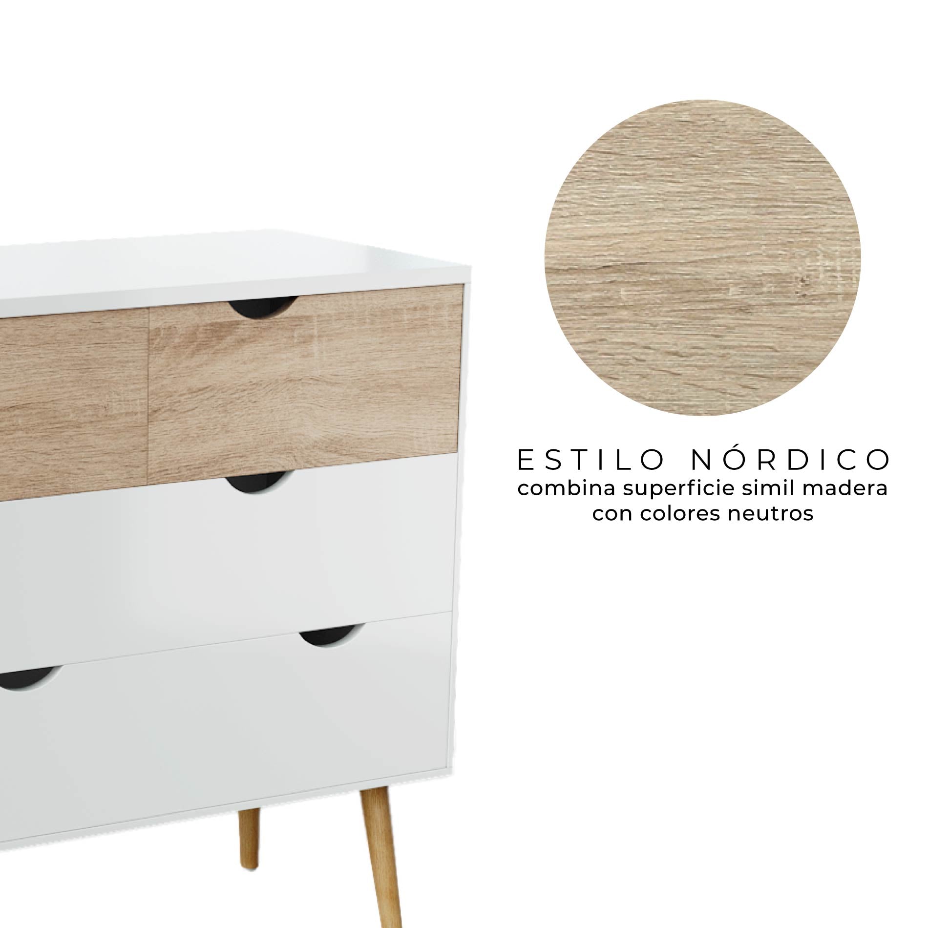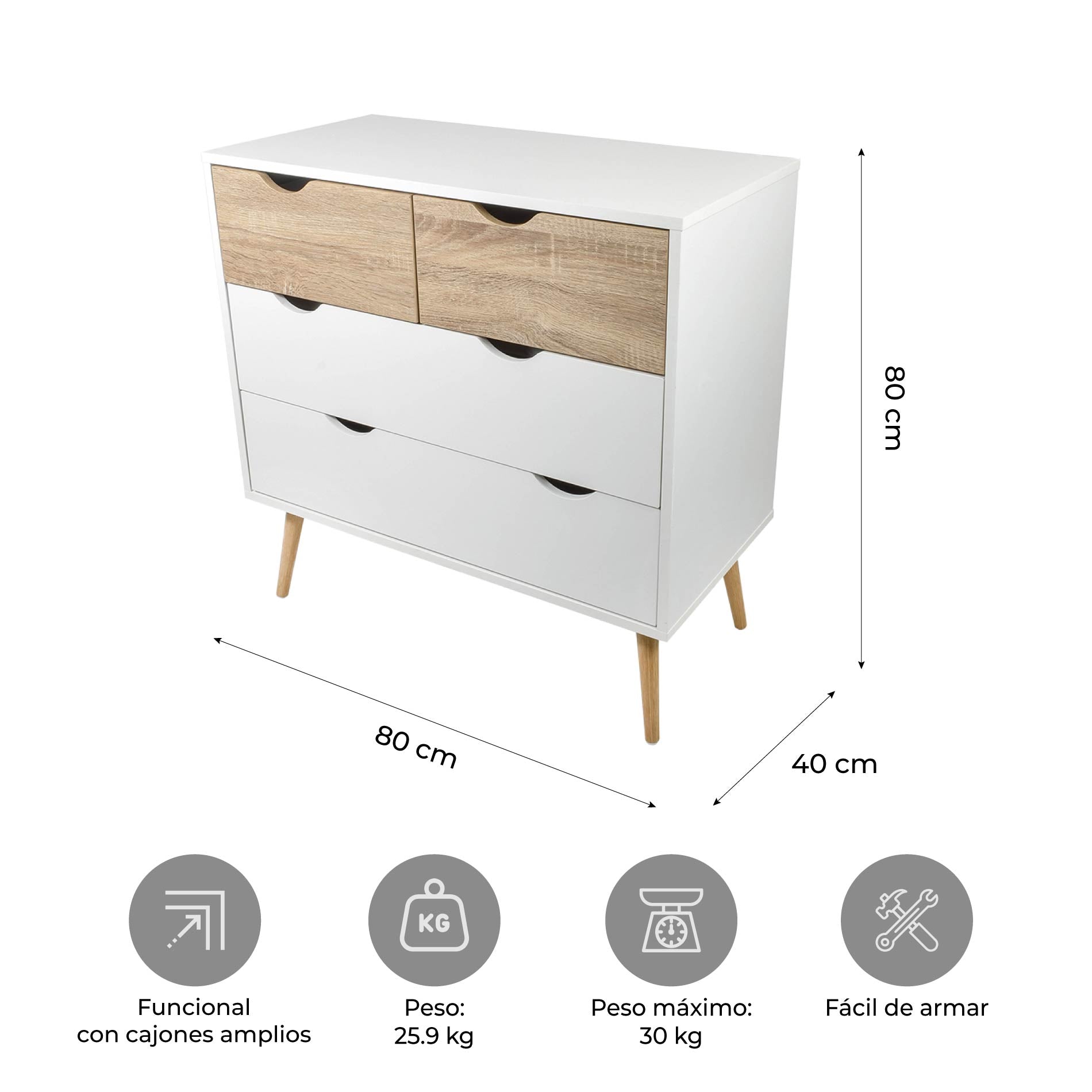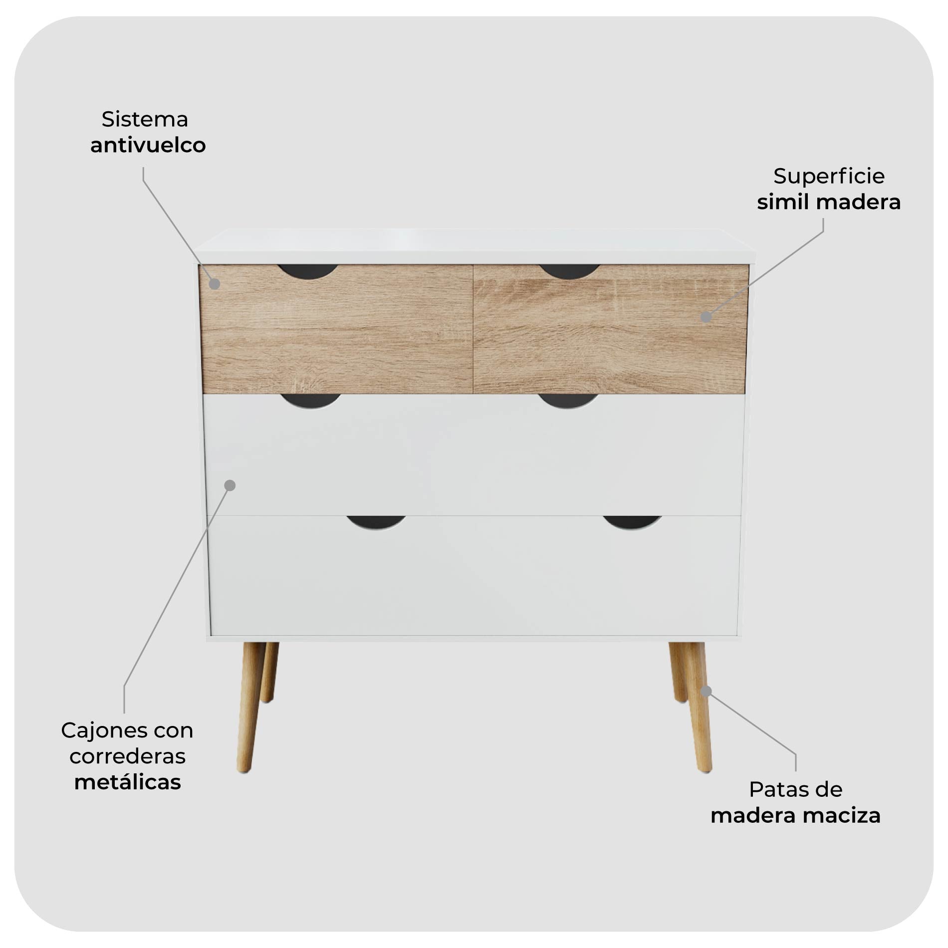 Cómoda Aloe con 4 Cajones Beige y Blanco