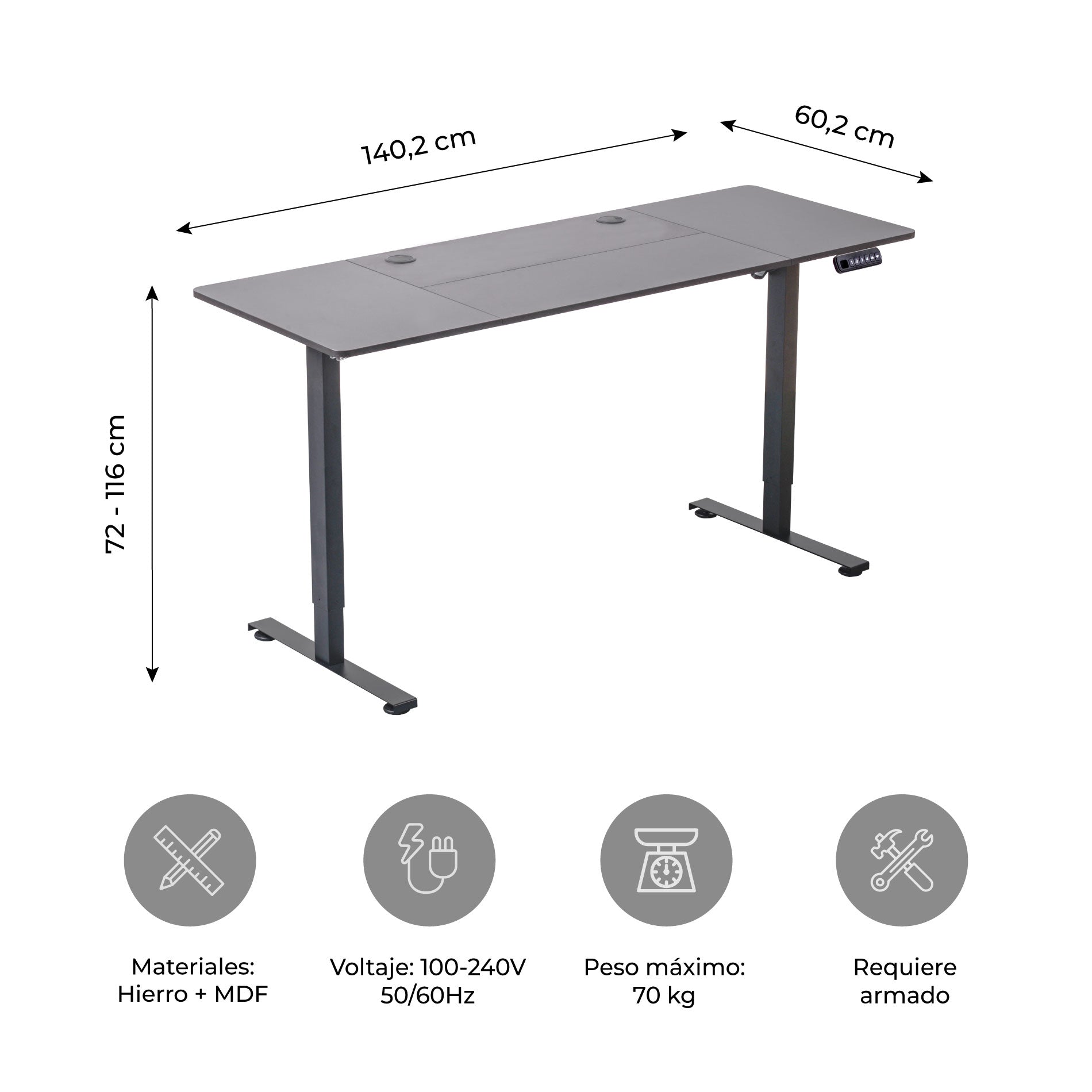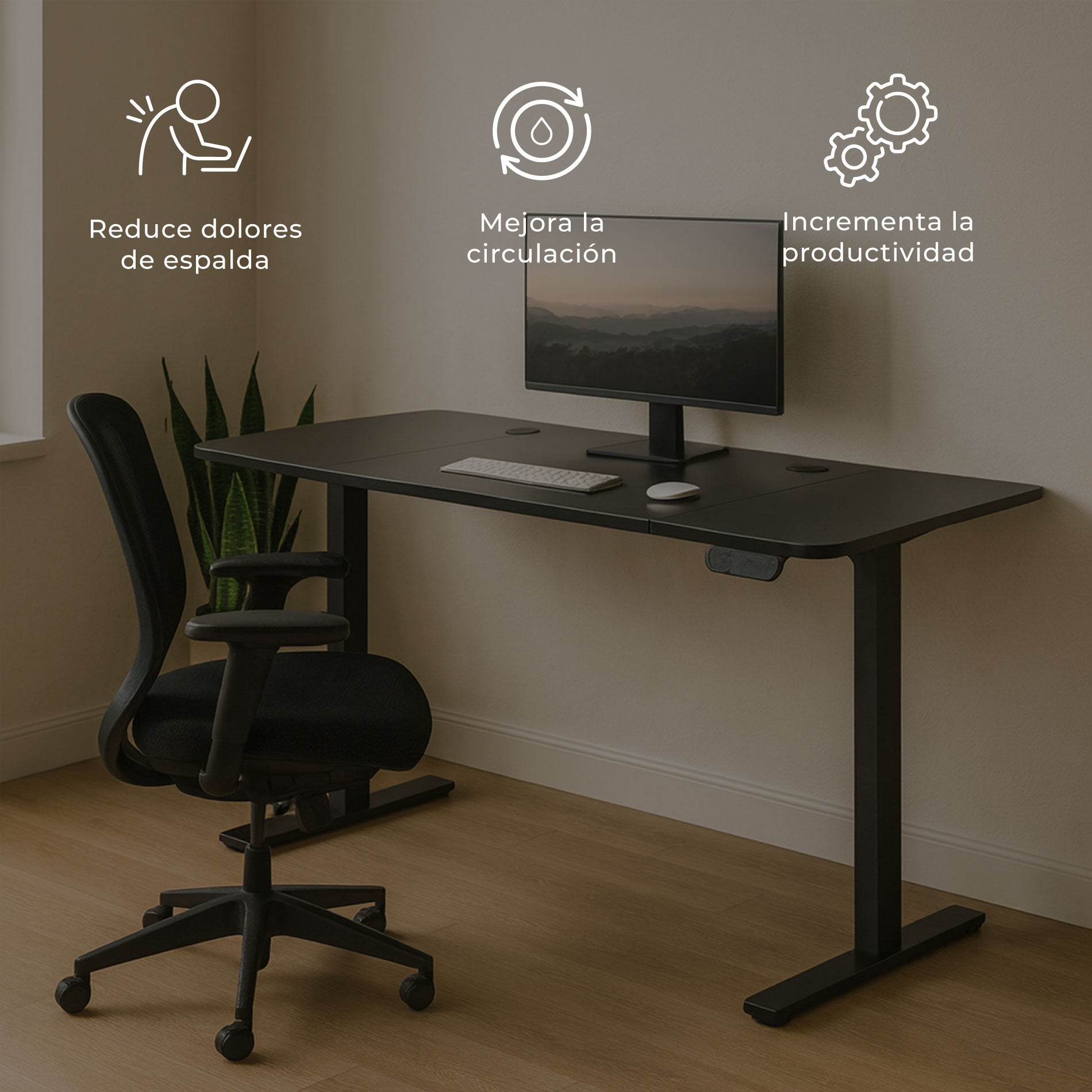 Crea el espacio de trabajo perfecto con este escritorio eléctrico con elevación automática, podrás ajustar su nivel de altura de forma práctica y sin esfuerzo con solo apretar un botón. Trabaja de pie o sentado, te permitirá cambiar de postura cuando lo necesites para reducir la fatiga durante largas jornadas.