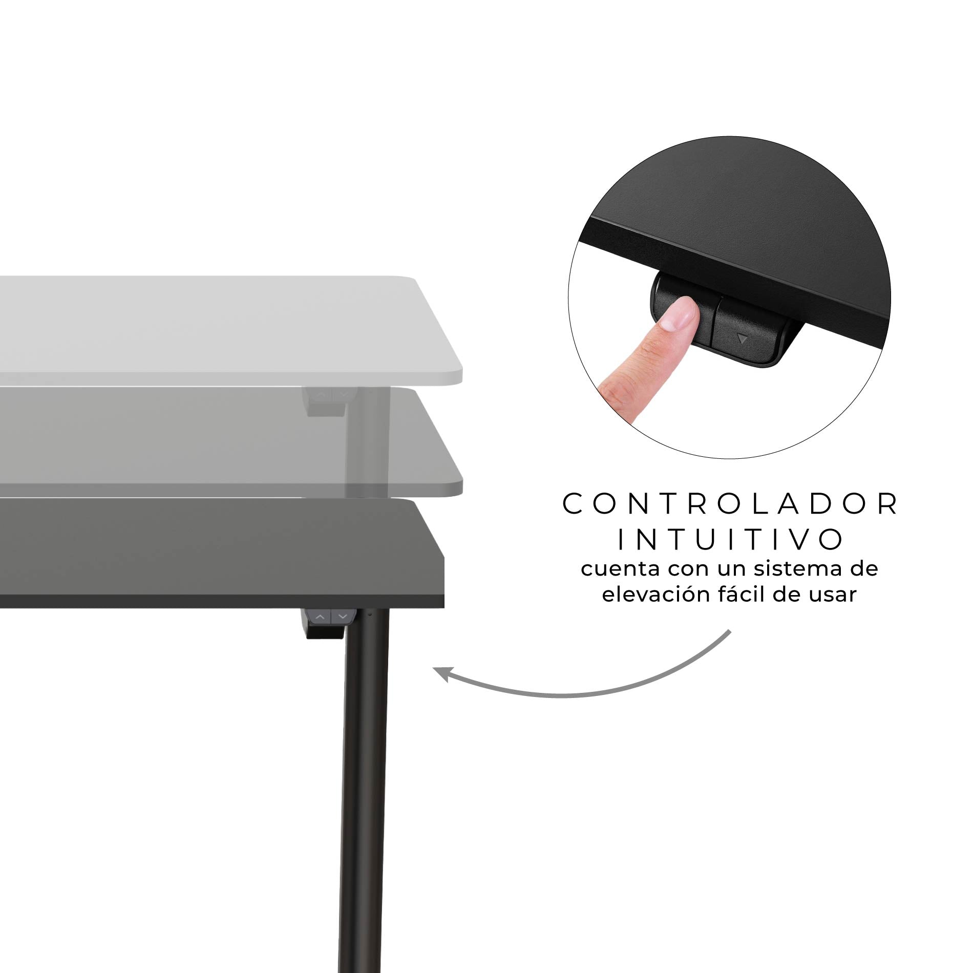 Crea el espacio de trabajo perfecto con este escritorio eléctrico con elevación automática, podrás ajustar su nivel de altura de forma práctica y sin esfuerzo con solo apretar un botón. Trabaja de pie o sentado, te permitirá cambiar de postura cuando lo necesites para reducir la fatiga durante largas jornadas.