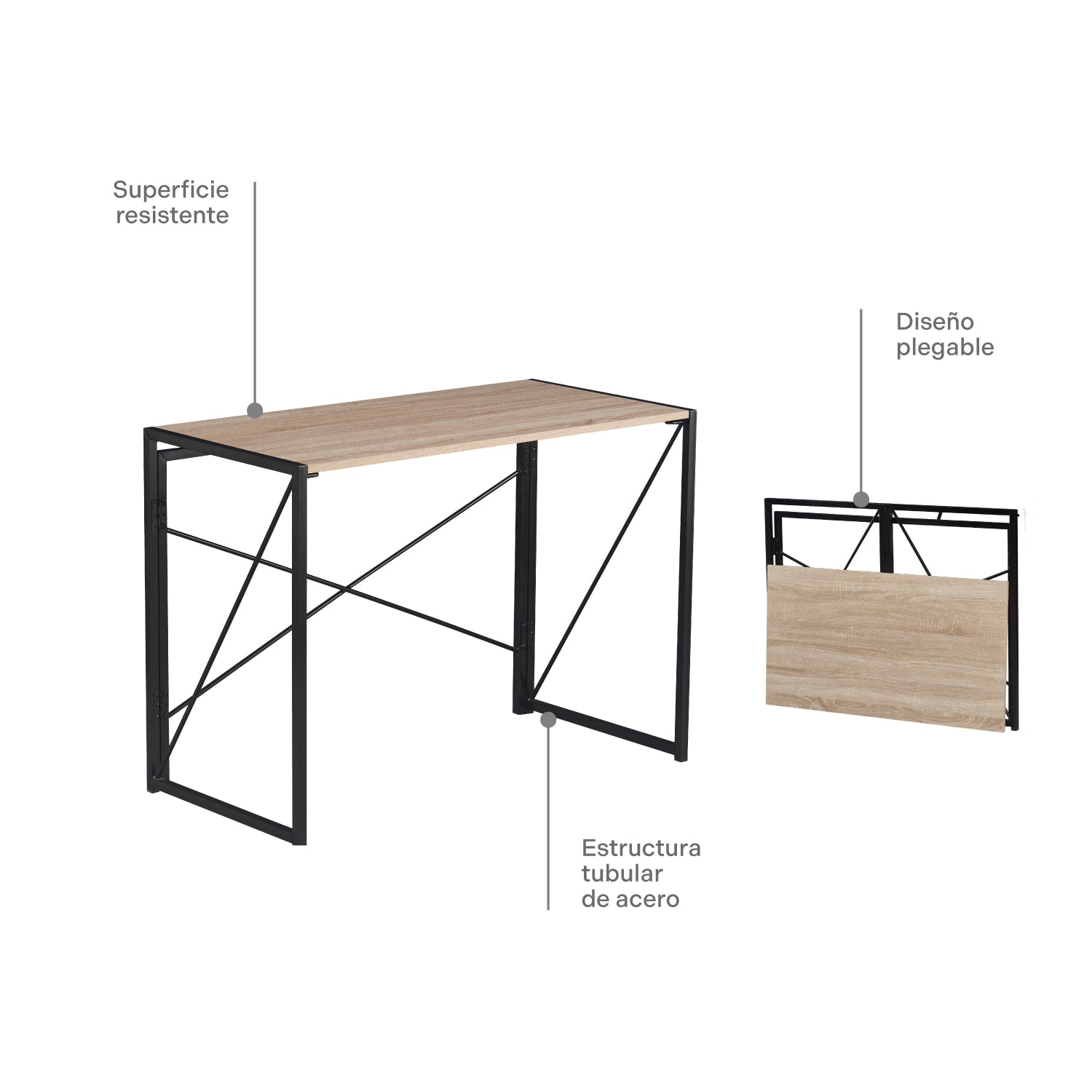 Escritorio Plegable con Base Metálica Negra