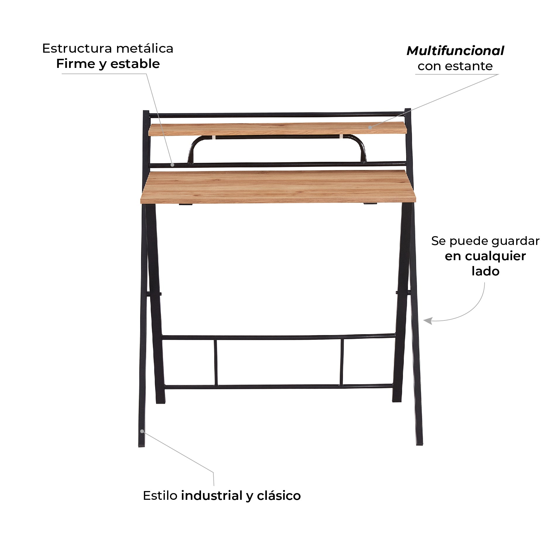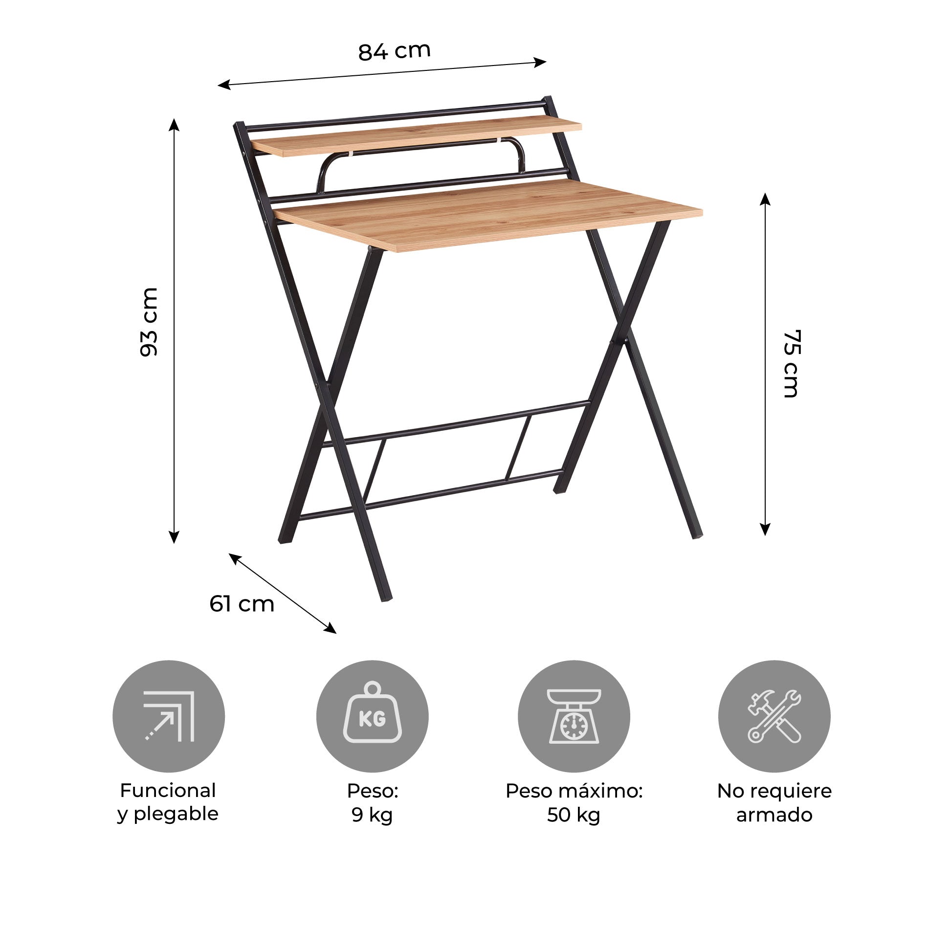 Optimiza los ambientes de tu hogar con este compacto escritorio plegable, ideal para armar tu espacio de home office utilizando el mínimo espacio. Armarlo y desarmarlo es muy sencillo, lo cual te permitirá guardarlo discretamente sin estorbar.