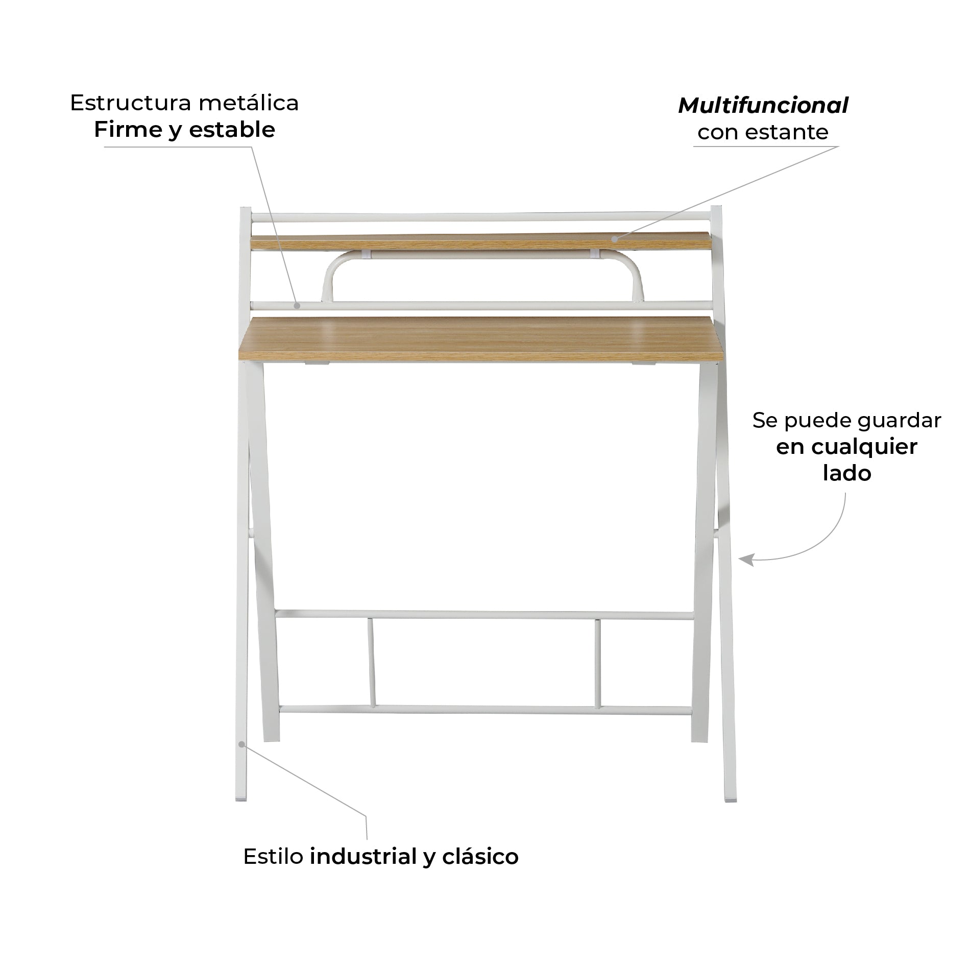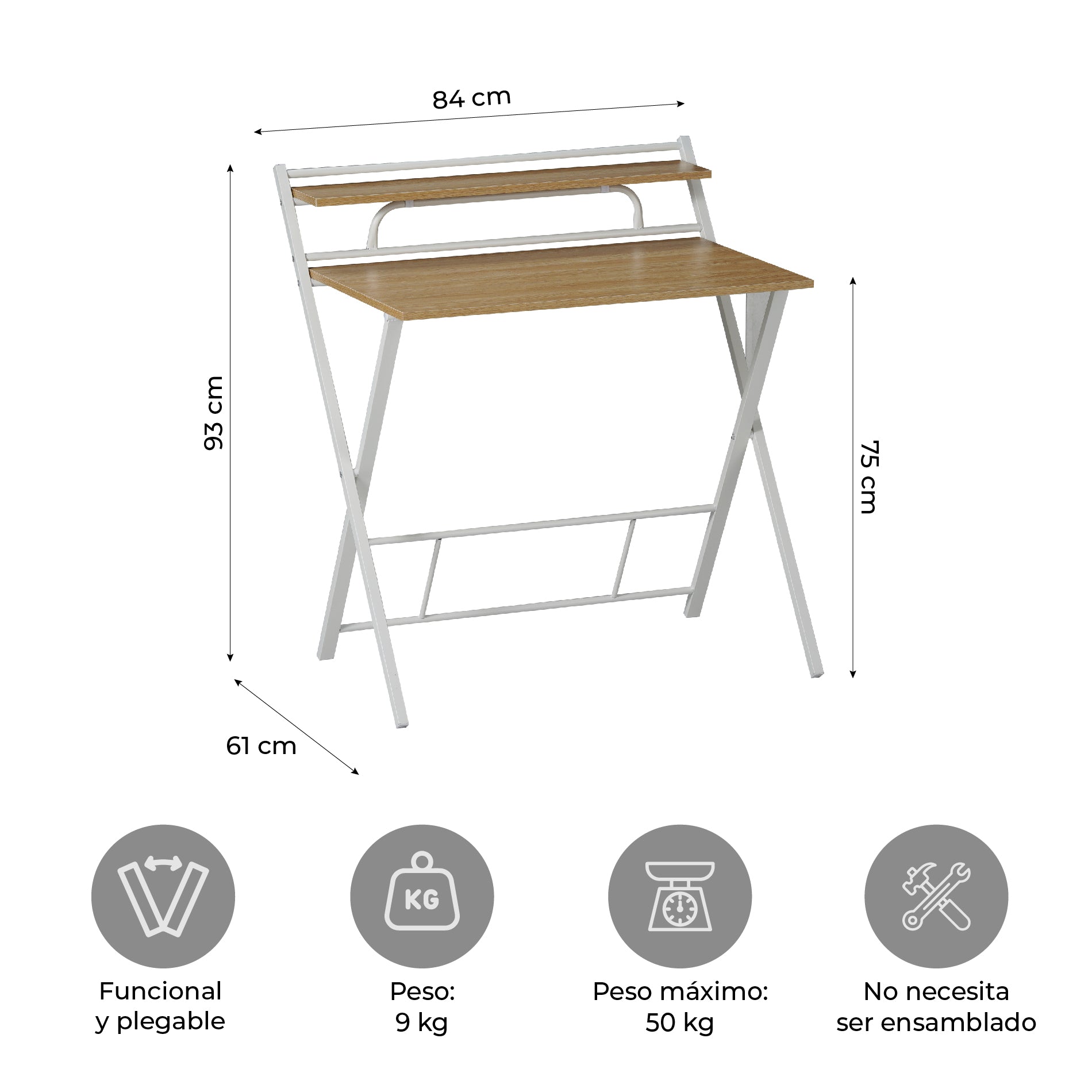 Optimiza los ambientes de tu hogar con este compacto escritorio plegable, ideal para armar tu espacio de home office utilizando el mínimo espacio. Armarlo y desarmarlo es muy sencillo, lo cual te permitirá guardarlo discretamente sin estorbar.