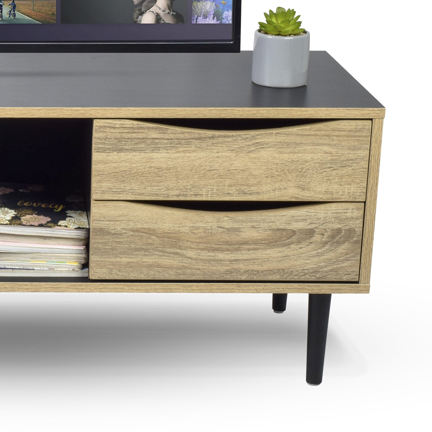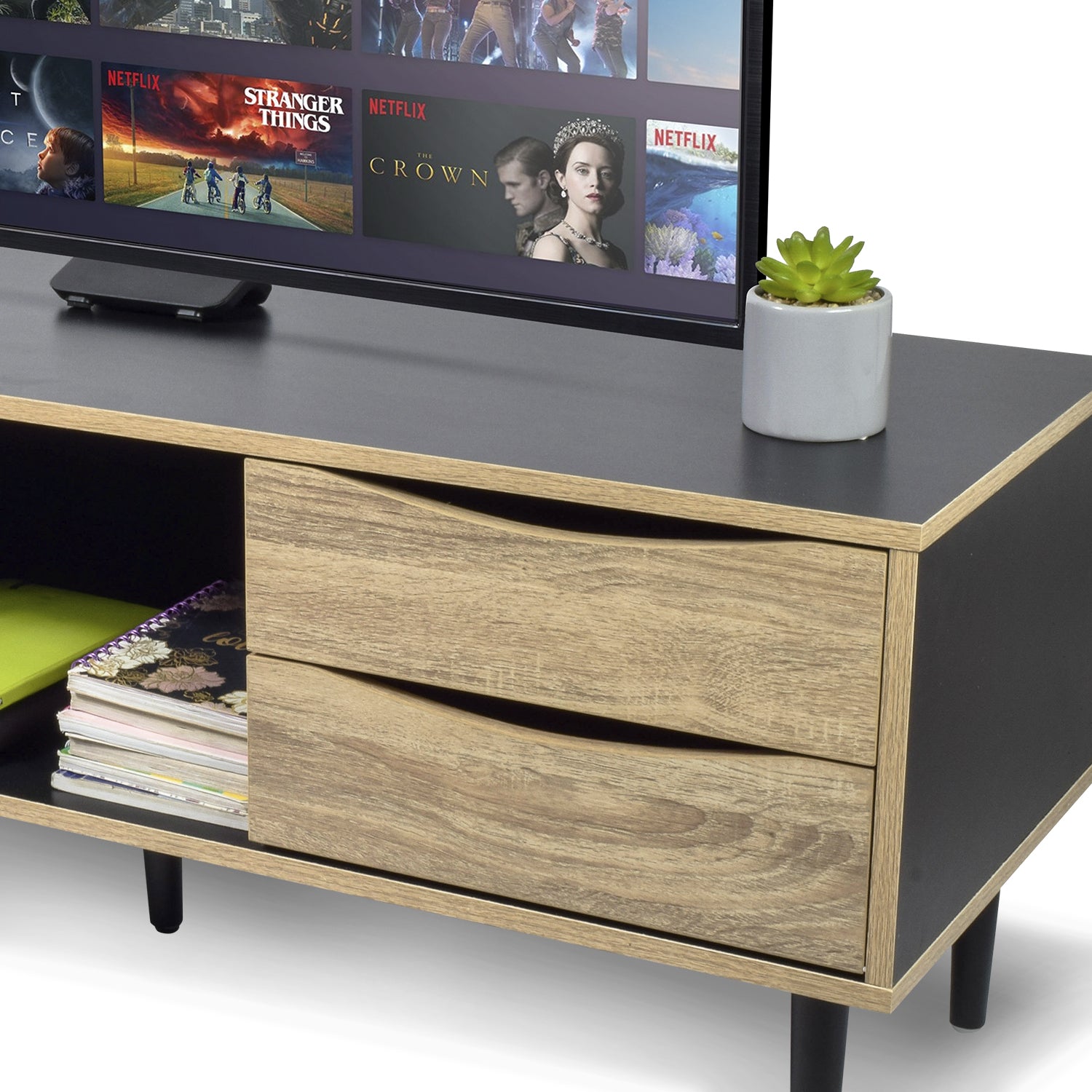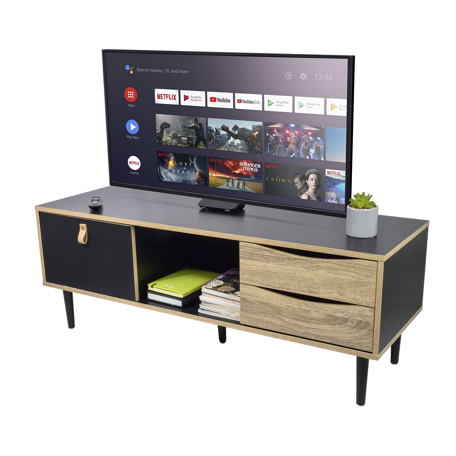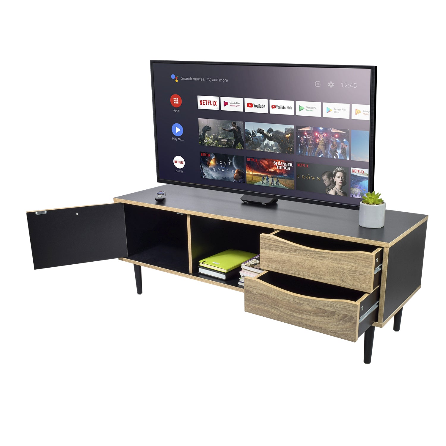- Elaborado con tablero de partículas y patas de madera maciza, materiales de la más alta calidad que brindan durabilidad y resistencia al soportar el peso de tu televisión, adornos u otros aparatos electrónicos.