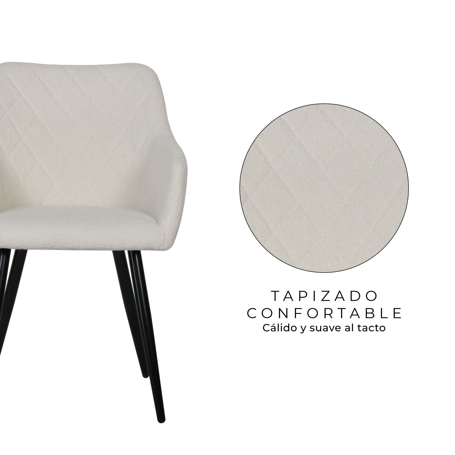- Materiales: tela tejido bouclé, espuma, madera, metal