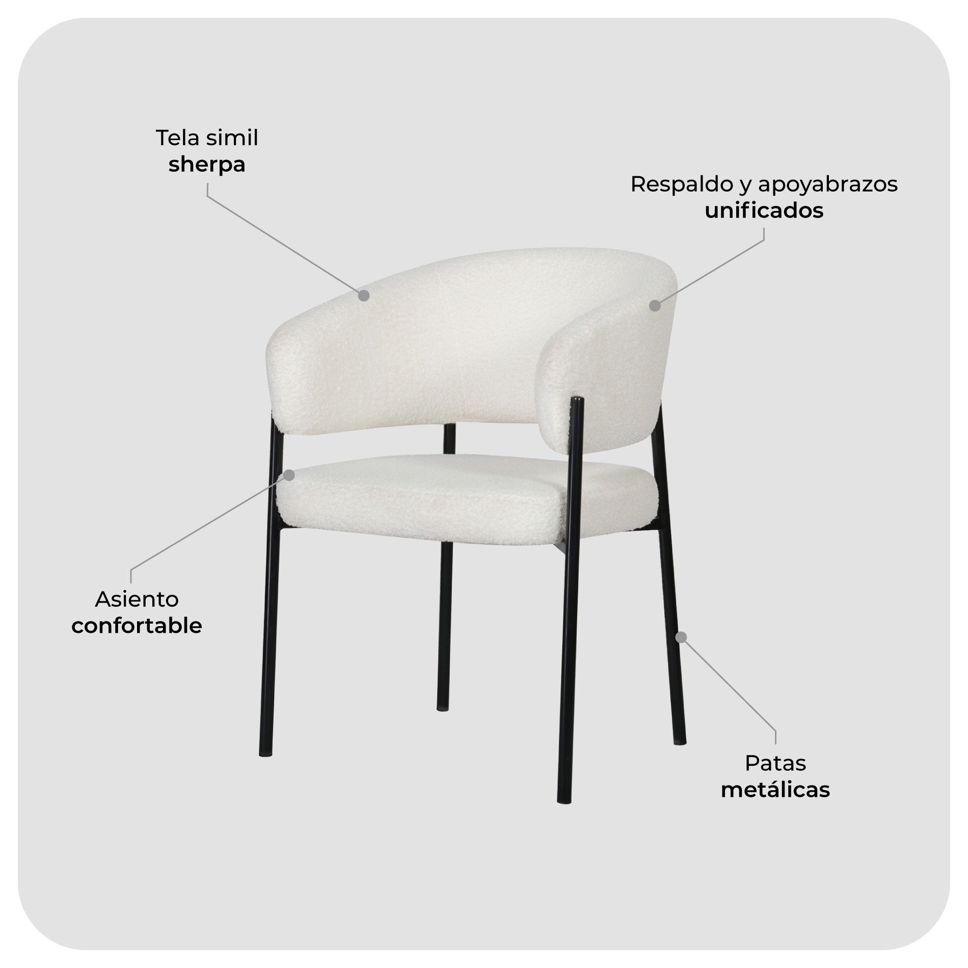Dale un toque elegante a tu sala o comedor con este moderno set de dos sillas tapizadas Arlon. Su estructura suave y cálida con apoyabrazos y respaldo curvo brindan gran comodidad.
