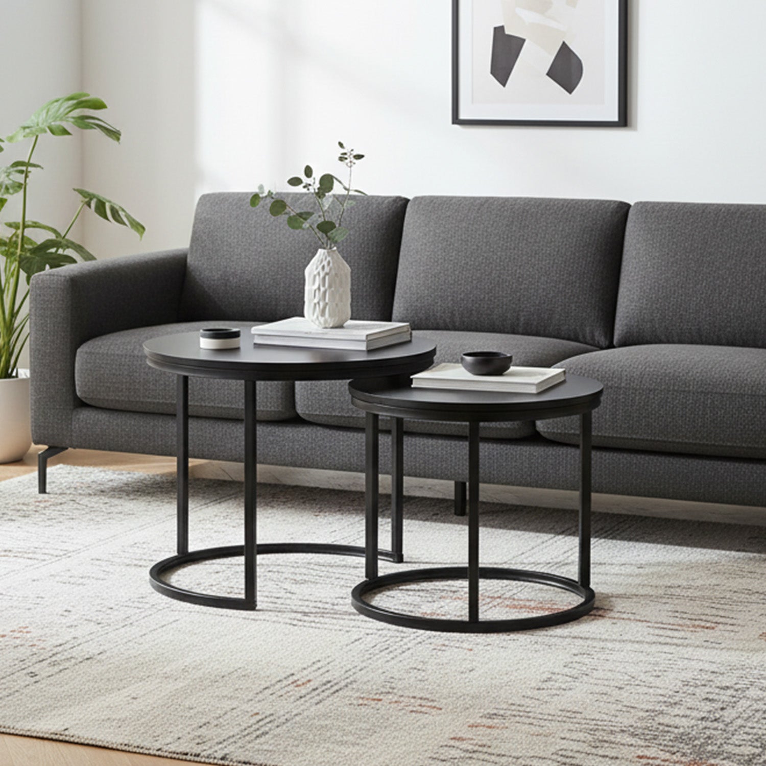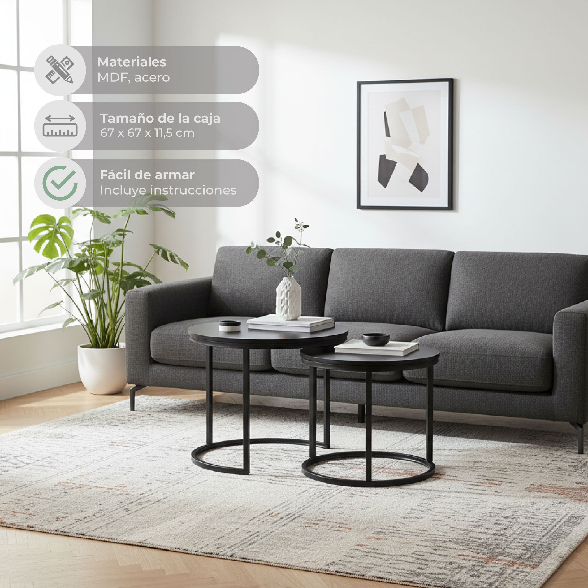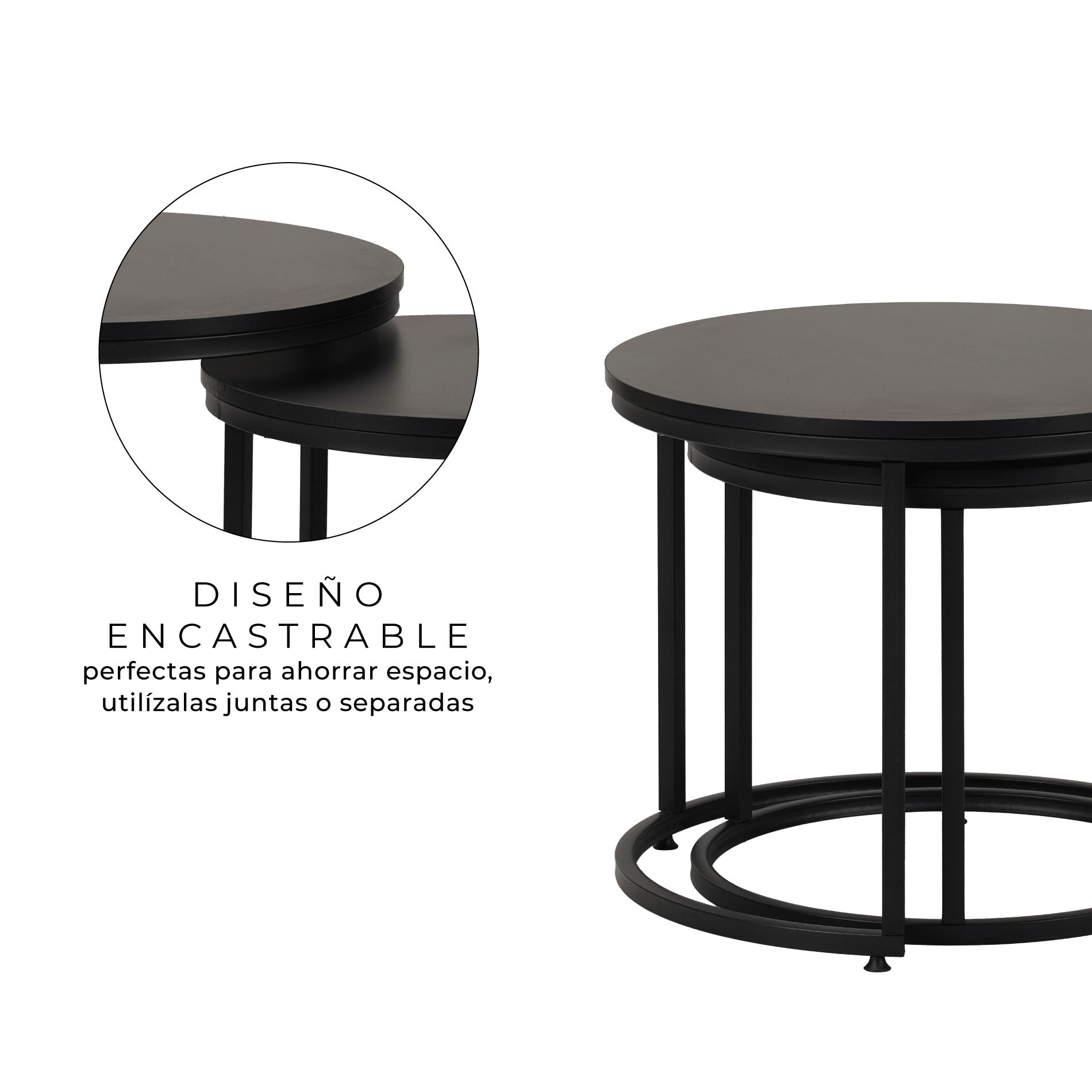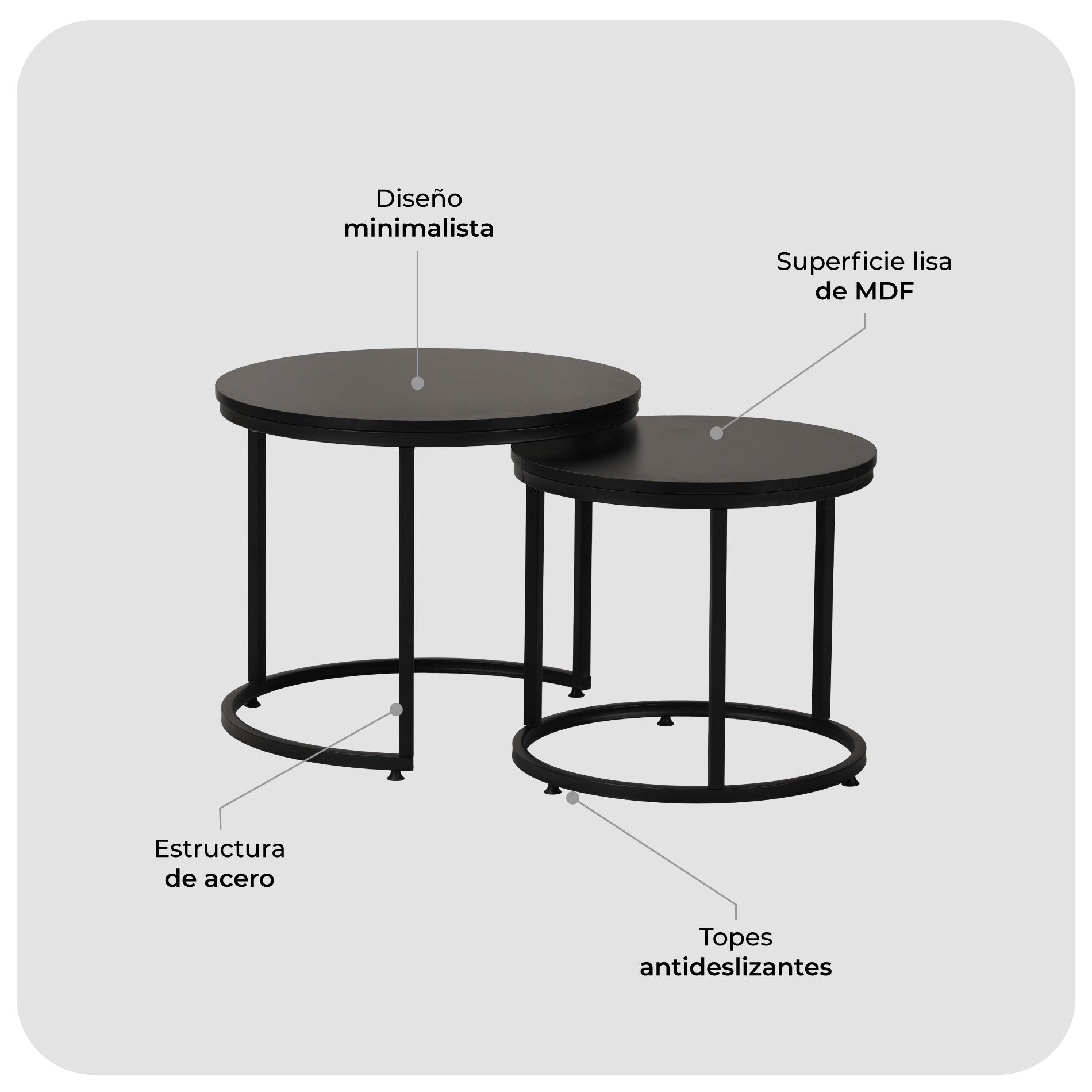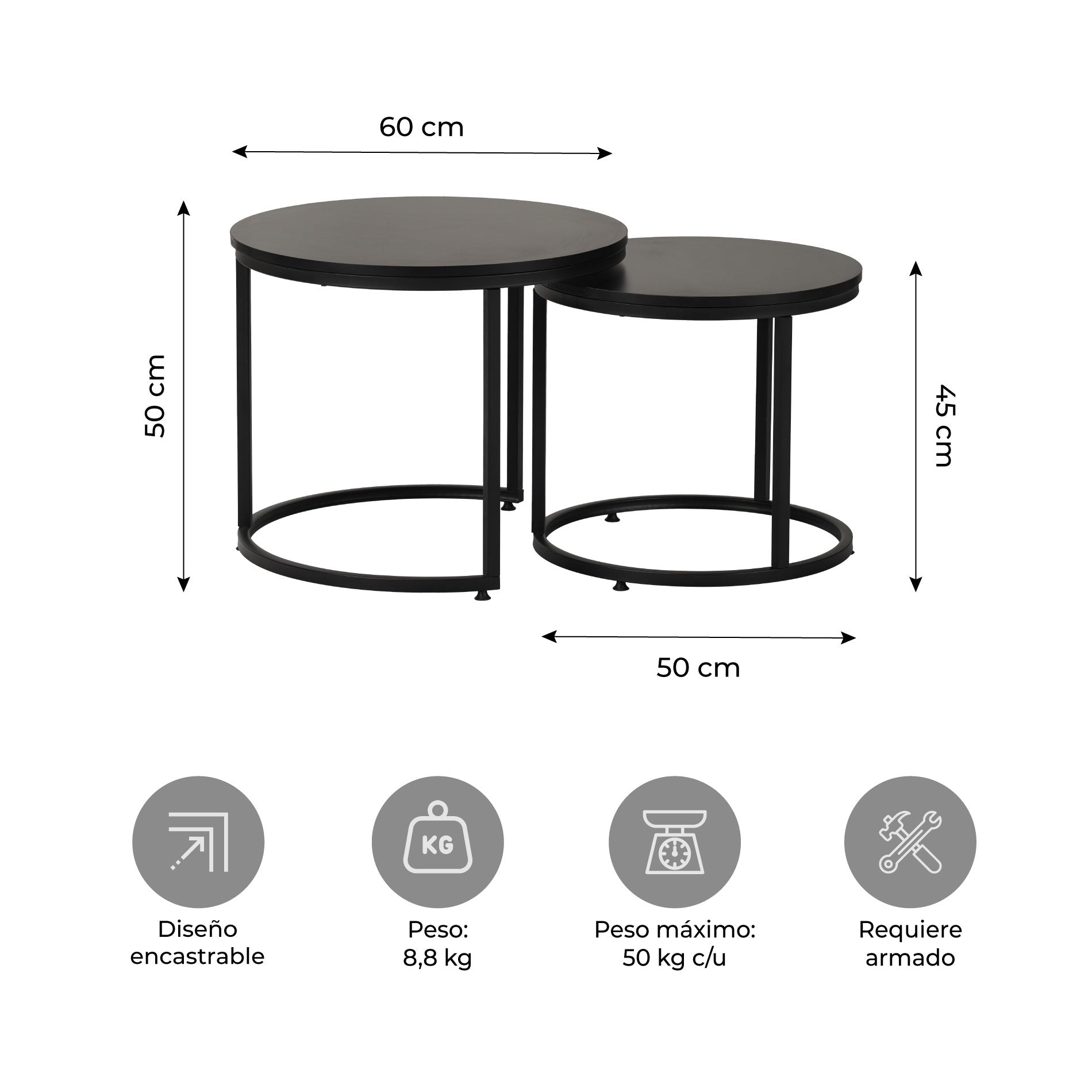 Suma diseño y funcionalidad a tu espacio con el Set de Mesas de Centro Core de la Línea Iron. Su estructura fusiona metal y madera negra para aportar un look moderno a tu espacio. Perfectas para salas, rincones de lectura o como apoyo lateral.