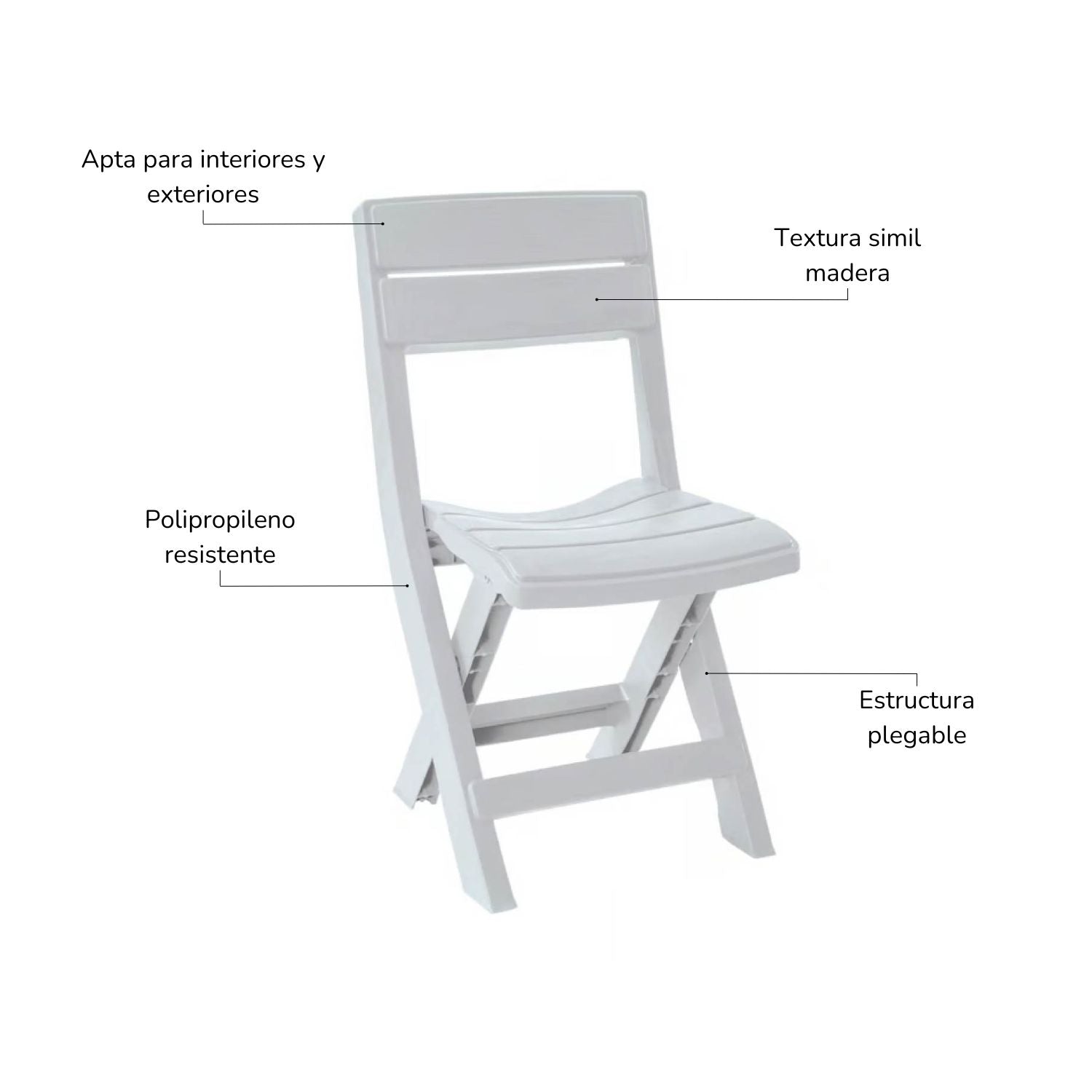 Encuentra la combinación perfecta entre estilo y funcionalidad con la silla plegable Luma. Su diseño con textura imitación madera aporta un toque acogedor a cualquier espacio, ya sea en interiores o exteriores. Además, es muy fácil de almacenar y limpiar.