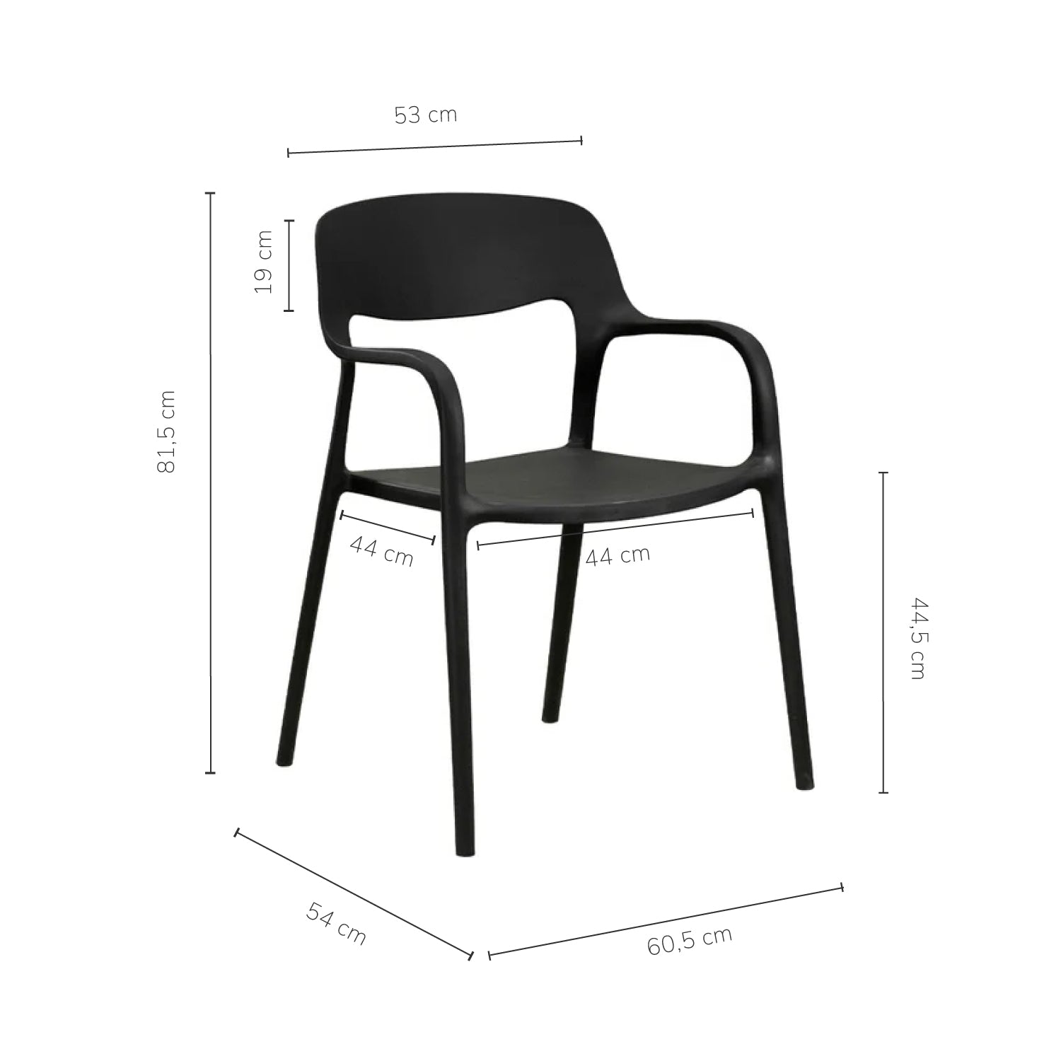 - Medidas de la silla: 60,5 cm ancho x 81,5 cm alto x 54 cm profundidad