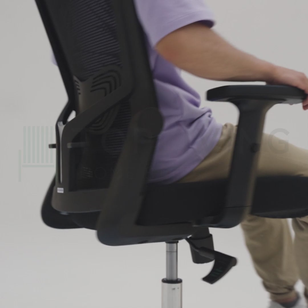 - Su asiento es acolchonado y esta tapizado en tela micro perforada tipo malla