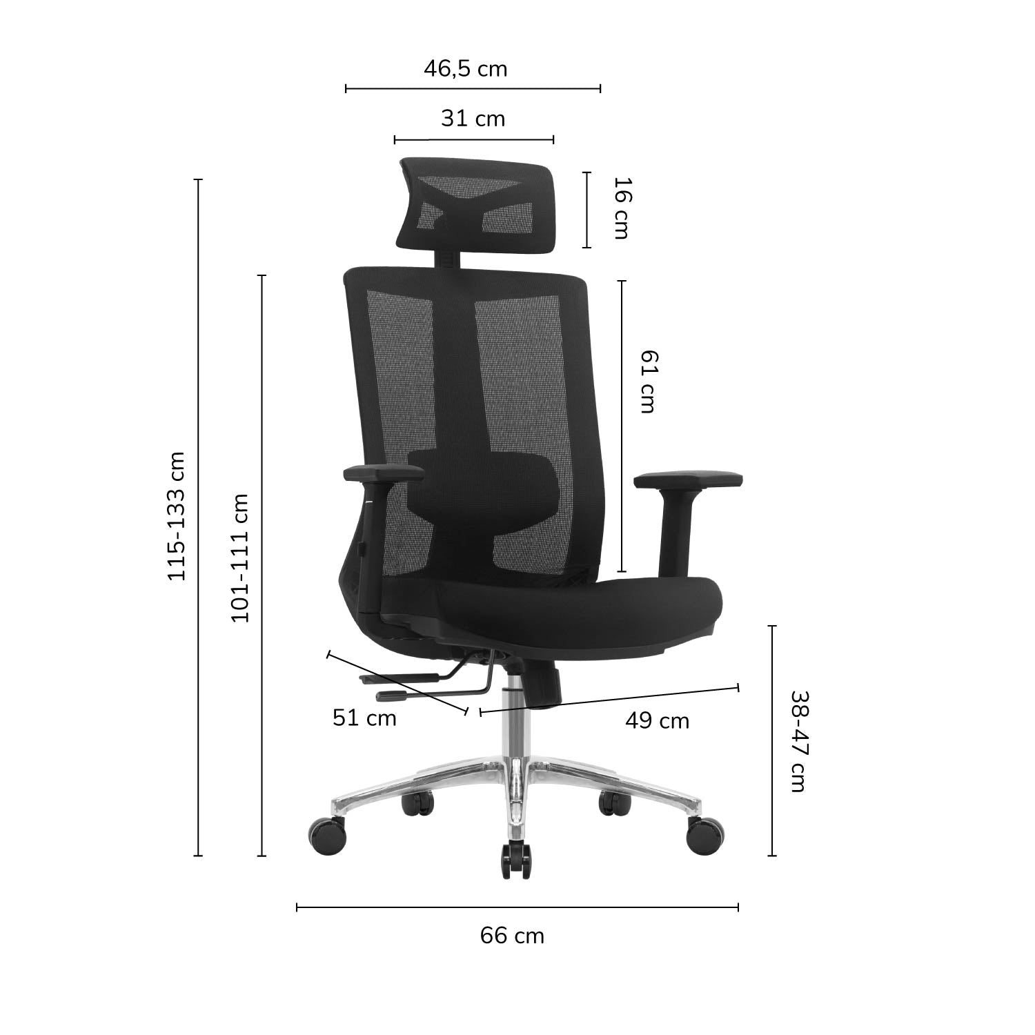 - Altura del piso al apoyacabezas: 115 - 133 cm