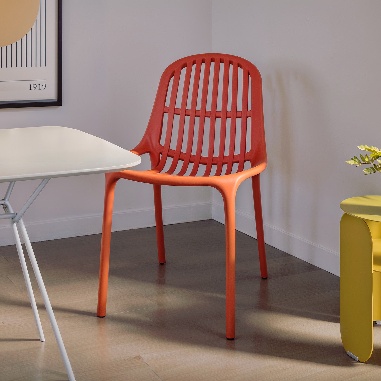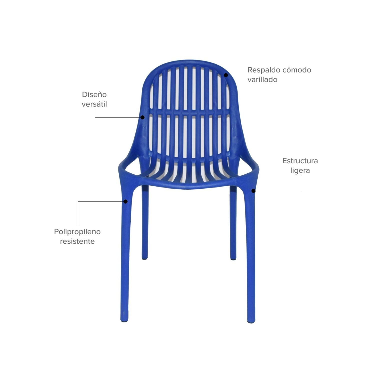 Dale un toque moderno y funcional a tus espacios con esta silla plástica de diseño varillado. Su estructura elaborada en polipropileno de alto impacto la hace resistente y liviana. Ideal para salas, bares y terrazas, es una opción versátil para interiores y exteriores. Además es apilable y no requiere armado, perfecta para un uso funcional.