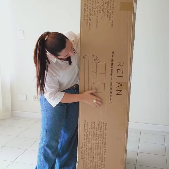 - Llega a tu hogar en caja, comprimido al vacío. No tendrás que preocuparte por su tamaño a la hora de recibirlo ya que cabe fácilmente por puertas, pasillos y ascensores